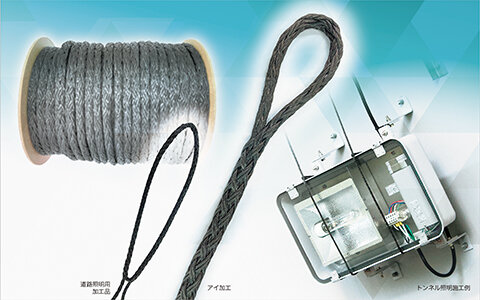 一般的なロープと同じように使用できるほか、ステンレスワイヤに替わる施設設備の落下防止対策ロープとしても使用することができます。端末部分は金具を使用せず、現場にて簡単に加工可能です(アイ加工)。